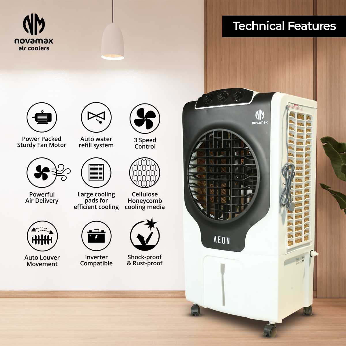 Technology Used : Honeycomb Cooling Technnology, Auto Water Refill System, Water Pump Protection Technology, Motor Overload Protector