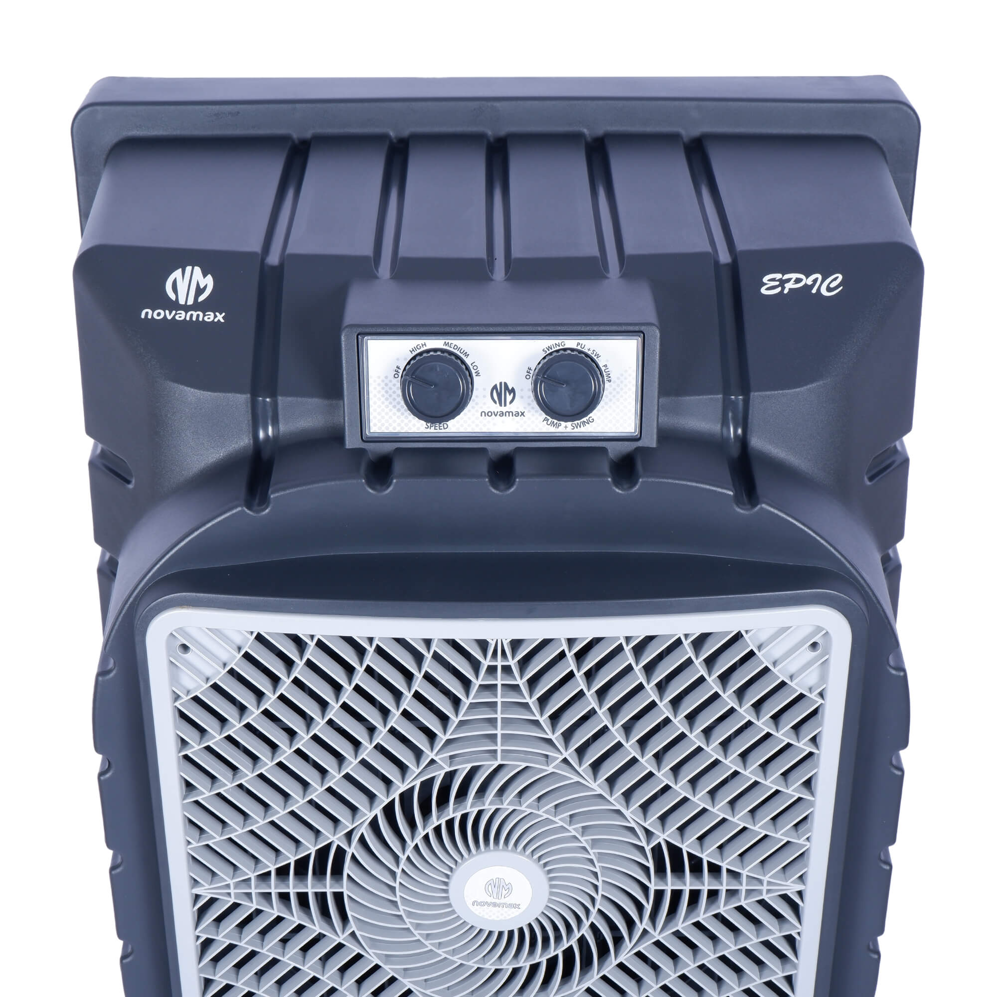 Introducing the Novamax EPIC 75 L Desert Air Cooler in Grey with Honeycomb & Auto Swing Technology.