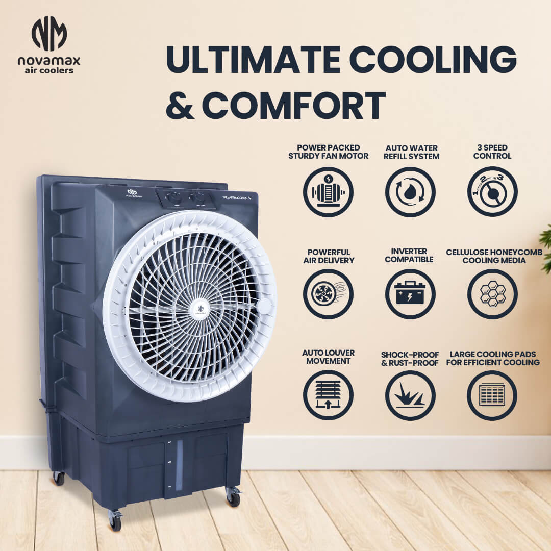 The Rambo 100+ is an impressive cooler that packs a punch despite its smaller size. Ideal for personal use or smaller rooms, it offers a significant cooling effect that you can feel immediately. The energy efficiency is a big plus, making it a cost-effective solution for staying cool.