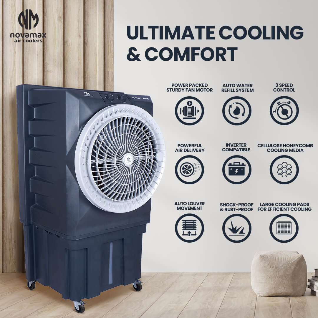 Technology Used : Honeycomb Cooling Technology, Auto Water Refill System, Water Pump Protection Technology, Motor Overload Protector